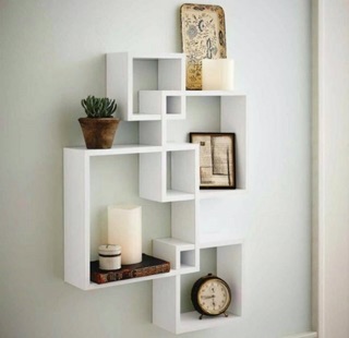 rak dinding flat set minimalis putih nempel kayu coklat Sumber : shopee.co.id
