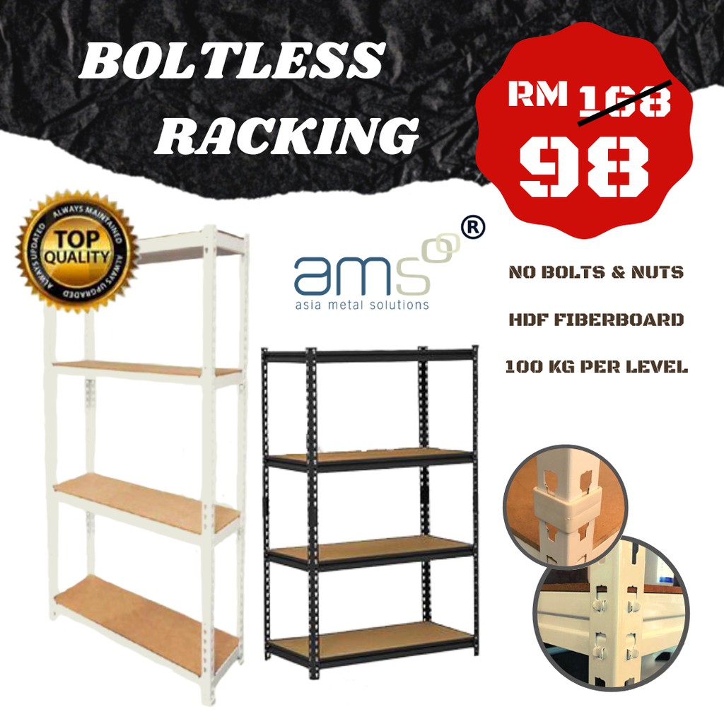 READY STOCK BOLTLESS DIY RACKING RAK BESI DIY WHITE Sumber : shopee.com.my