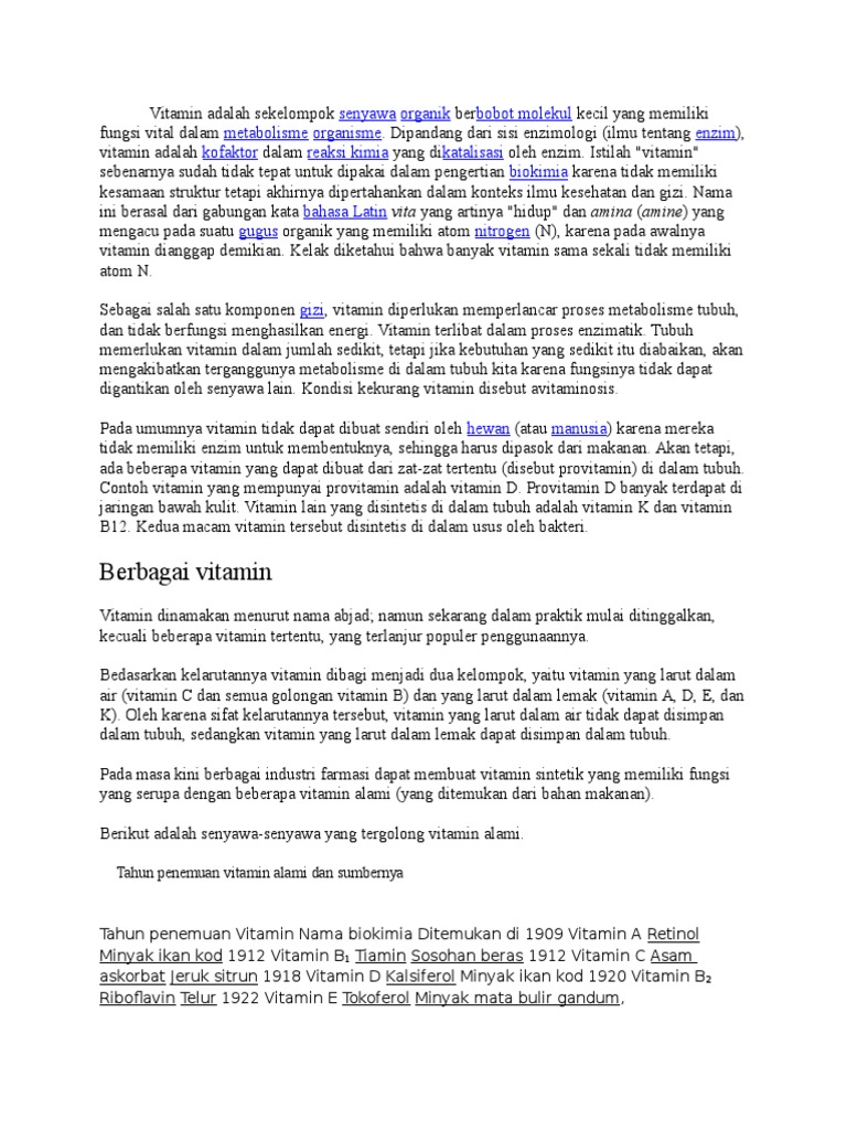 Vitamin Adalah Sekelompok Senyawa Organik Berbobot Molekul Sumber : id.scribd.com